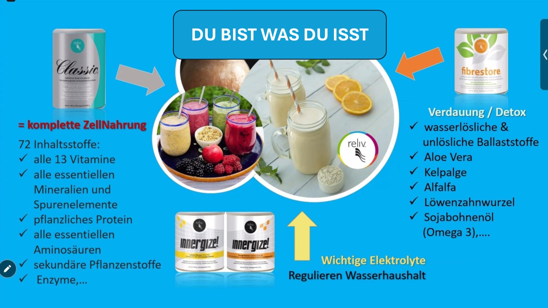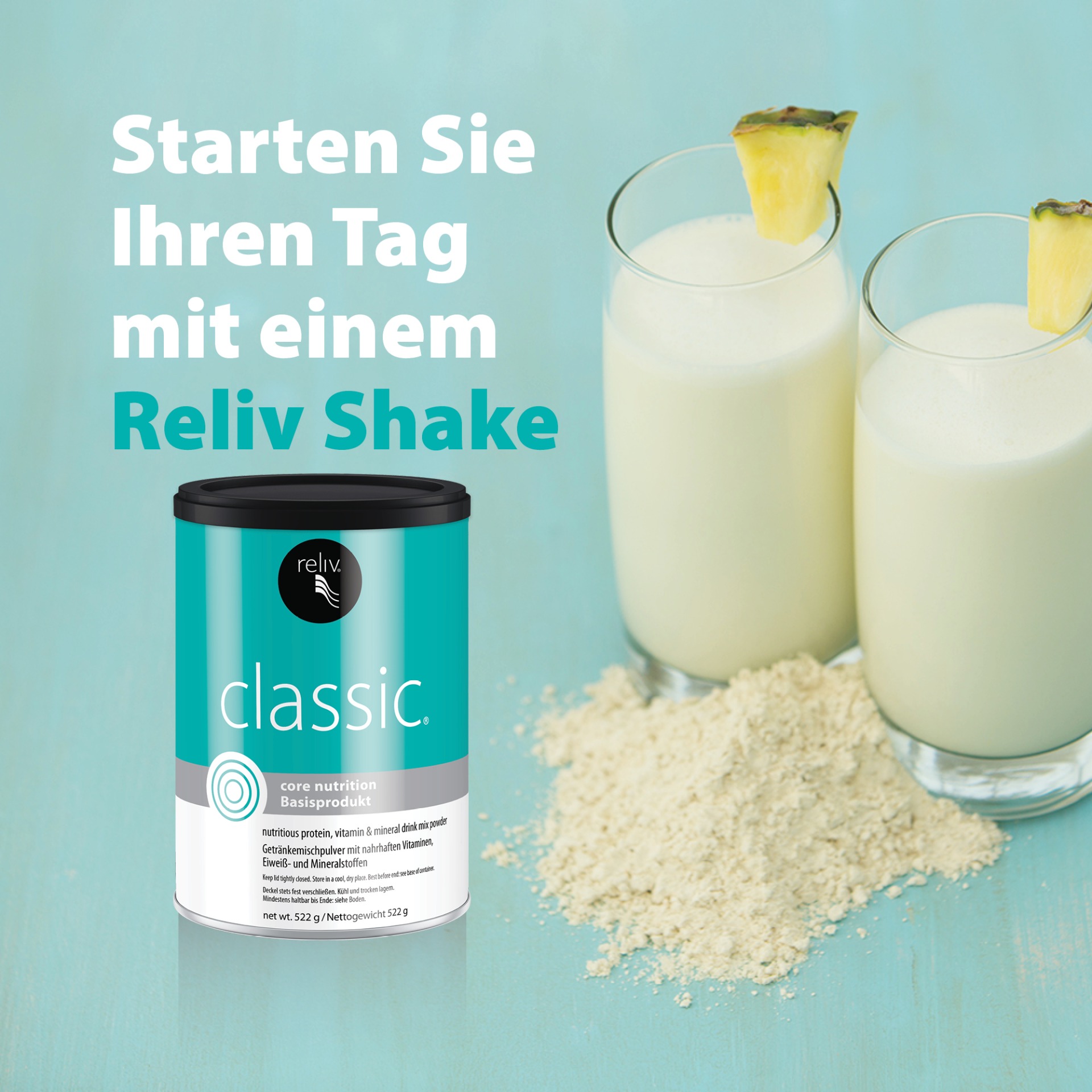 Reliv "Classic" macht eine komplexe Ernährnung für alle sehr einfach. Reliv Classic hat 72 Inhaltsstoffe und eine fein abgestimmte Anordnung von Vitaminen, Mineralien, Soja-Protein und ausgewählten Kräutern.